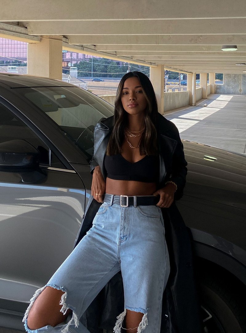 I paired the jeans with a high-neck black ribbed cropped tank. This tank is a super thick material so no need to wear a bra! Black tank tops like this one are staple pieces to have in your wardrobe because they are easy to style and are great layering pieces.